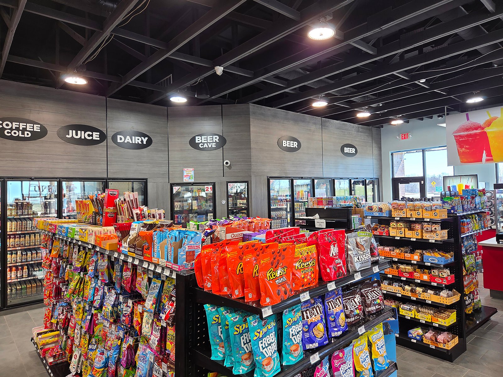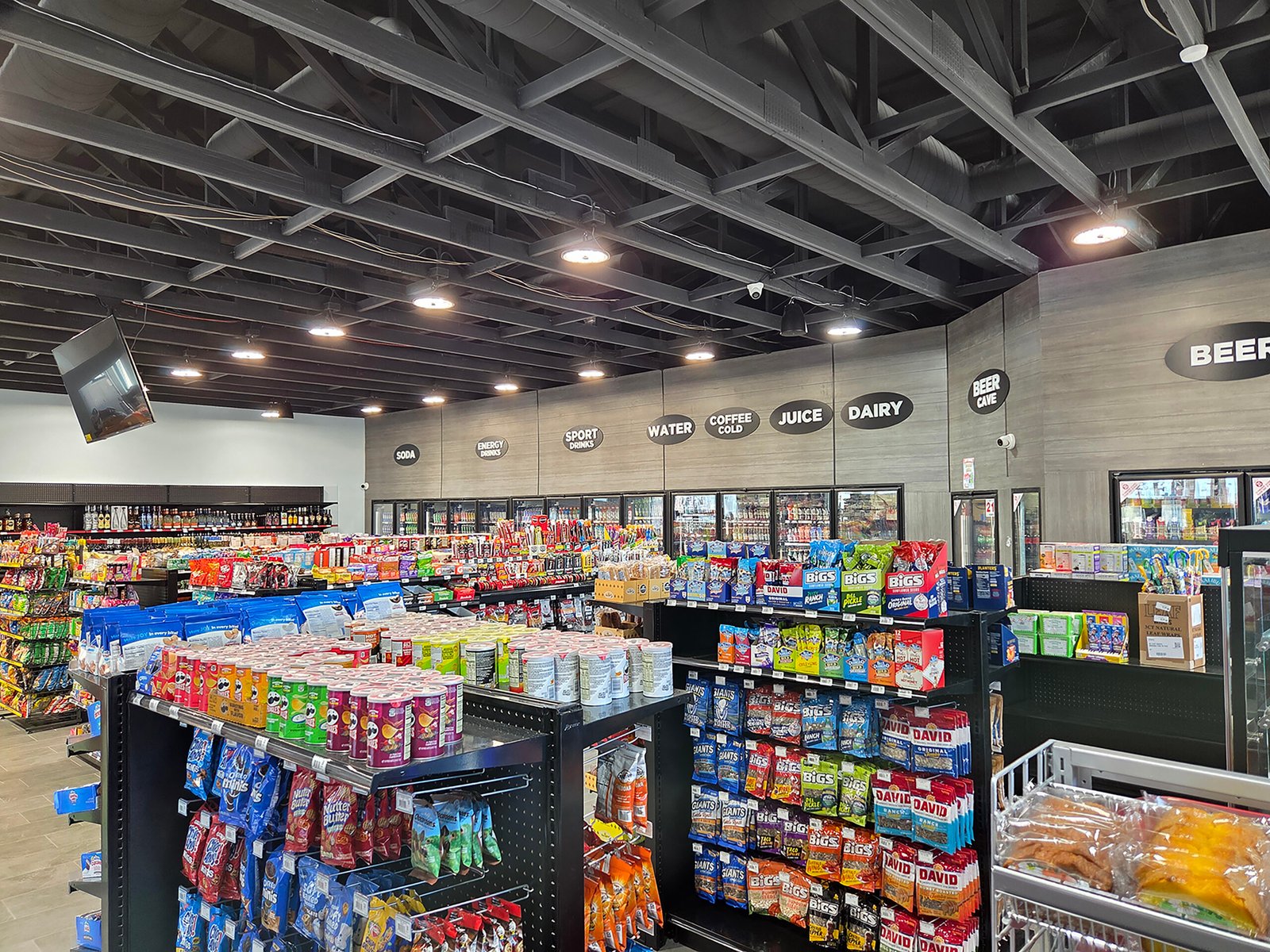 The Prime State Convenience Store, named Speedy Corner, is 4,000 SF of a 5,400 SF building. The remainder of the building was designed per JIB and coordinated thru their company operations. Given that the building is along a parkway, exterior finishes needed to conform to City requirements. A certain percentage of the facade needed to be glazing systems. Otherwise, the envelope is cladded in masonry and EIFS systems. JIB’s branding is on the north end of the building. The interior portion of the convenience store hosts a large walk-in beer cave, a slew of beverage, food, and goods, as well as carry out access to JIB.